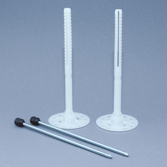 Kołki do styropianu z trzpieniem metalowym i długą strefą rozporu 5,5 cm – 8 cm. Do mocowania styropianu do betonu, cegły pełnej, gazobetonu, cegły pełnej ceramicznej, pustaków. Łączniki tworzywowe, wbijane, do mocowania warstwy izolacyjnej ociepleń ścian zewnętrznych ETICS wykonanej z płyt styropianowych lub płyt z wełny mineralnej.