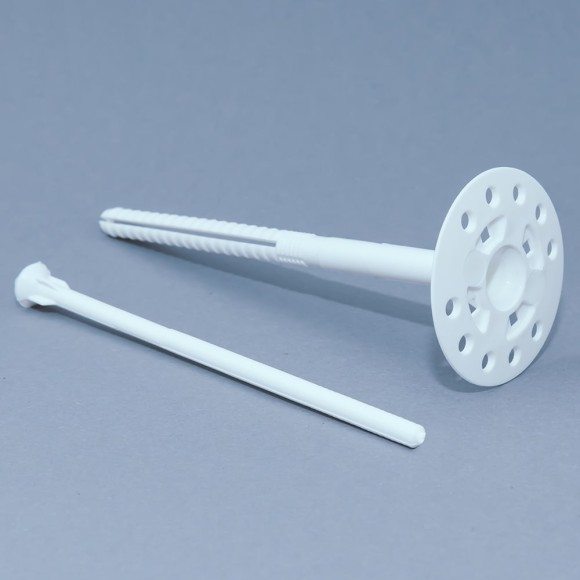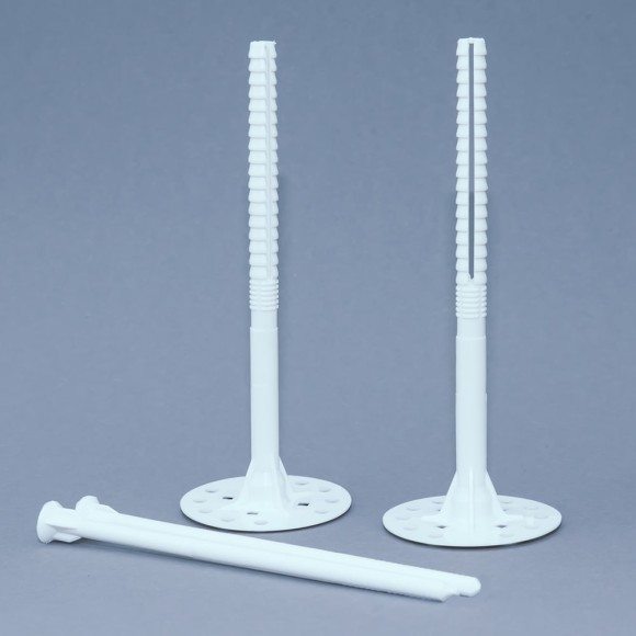 Kołki do styropianu z trzpieniem plastikowym i z długą strefą rozporu. Do mocowania styropianu do gazobetonu, cegły dziurawki, pustaków typu Porotherm, cegły kraówki, pustaków silikatowych z otworami. Łączniki tworzywowe, wbijane, do mocowania warstwy izolacyjnej ociepleń ścian zewnętrznych ETICS wykonanej z płyt styropianowych lub płyt z wełny mineralnej.